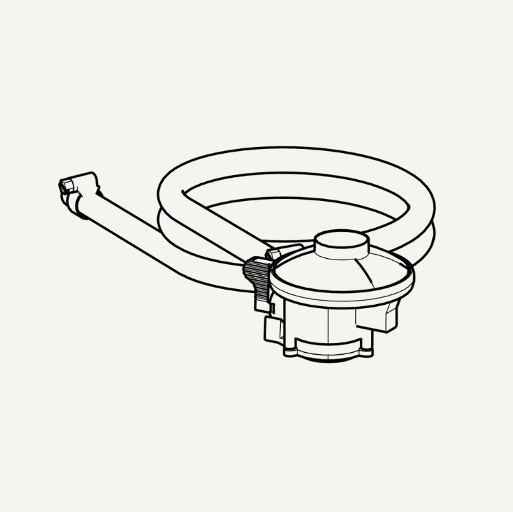 Dome Gen 2 Series gas hose with quick fit connection and 37mbar click fit regulator for connection to a standard UK LPG patio gas bottle.